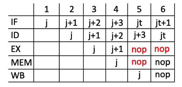 - Place a NOP instruction in the EX stage in the clock cycle after the jump instruction is in the WB stage.
