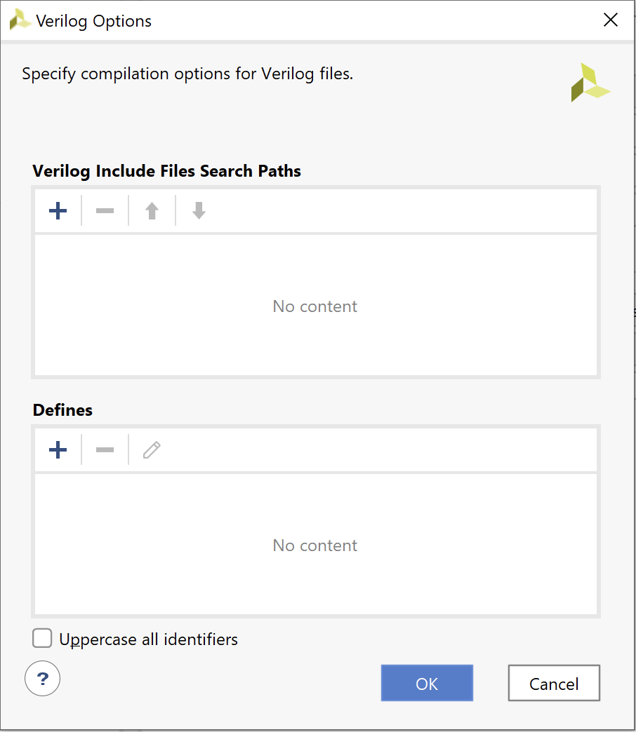 Select the “…” icon next to the ‘Verilog Options’ under the ‘Language Options’ on the right side pane of the project settings dialog box